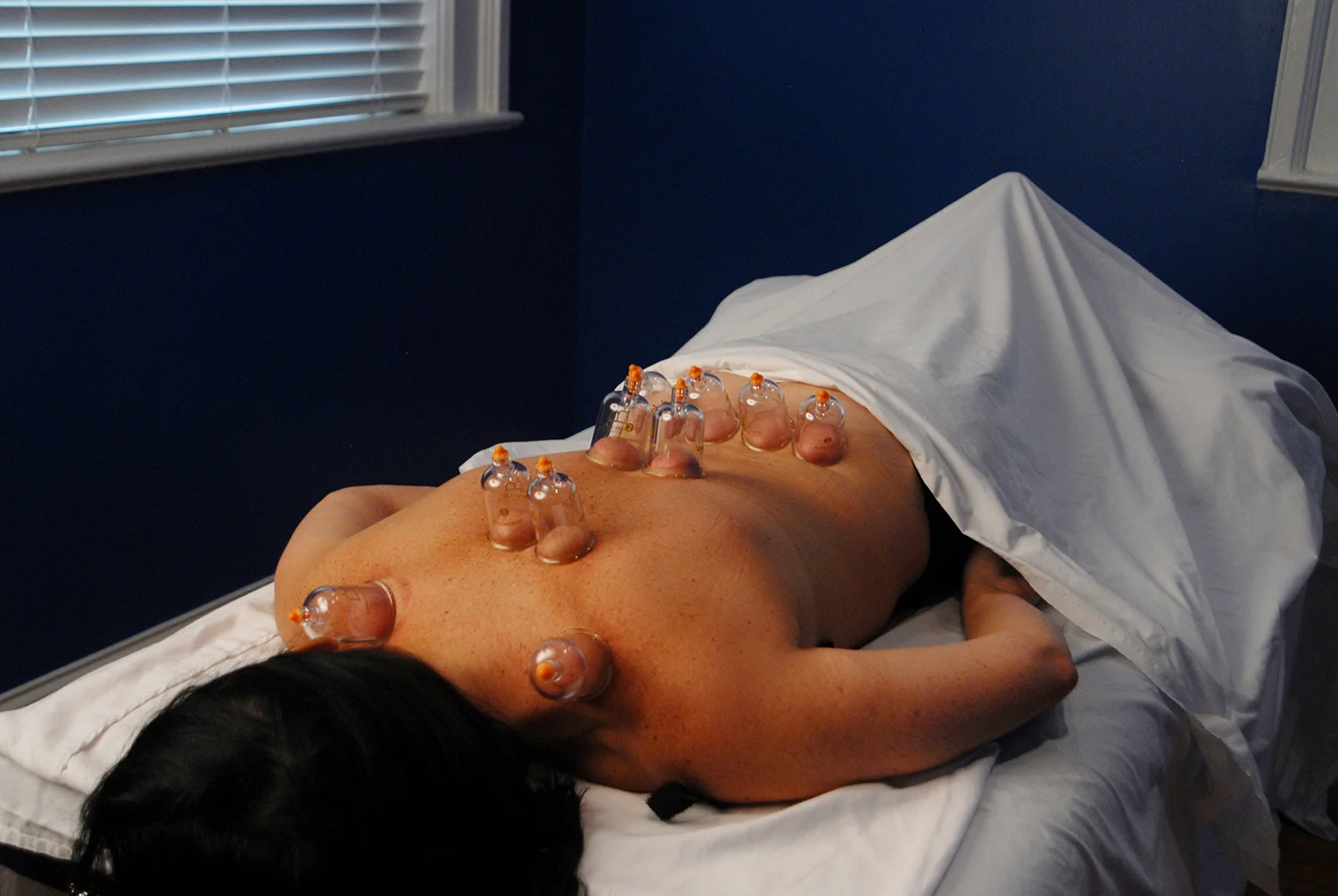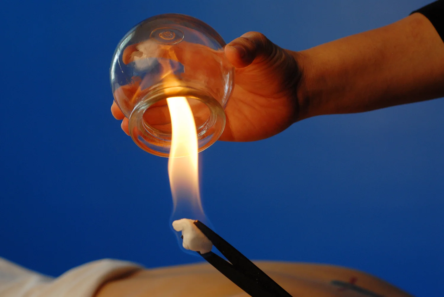 The inside of glass cups are lit with fire to create a vacuum. The cups are placed on various areas of the body to promote increased circulation and movement of qi, providing a variety of healing benefits.